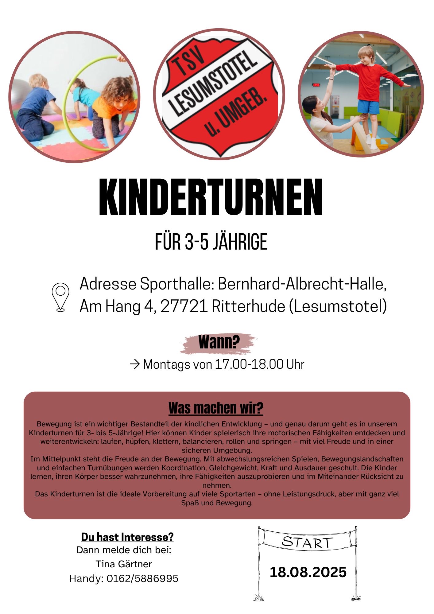 Die Kinderturngruppe ist eine altersgemischte Gruppe für Kinder im Alter von 3-5 Jahren.